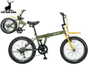キャプテンスタッグ CAPTAIN STAG 折りたたみ自転車 ◆商品情報◆ これがCAPTAINSTAG折りたたみファットバイク最強形態! 常時点灯大型砲弾ライトを格納したオリジナルフロントキャリアをはじめ...