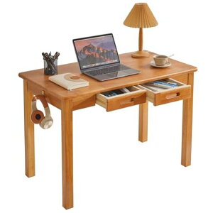 シンプルでオシャレなデスク:シンプルな木製デスク、引き出しと折りたたみ可能なゴールドフックを備え、天然ラバーウッドで作られ、暖かいさくらんぼ木色の装飾を組み合わせ、シンプルなラインと垂直テーブル脚がクラシックなビジネス