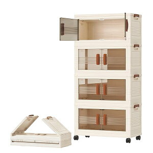 収納ボックス折り畳みコンテナ ボックス 折り畳み透明扉付き折りたたみボックス蓋付き本棚衣装ケース キャスター付き省スペース押し入れ収納ケース 家庭用 大容量書類、衣類、タオル (49x32x86.5cm...