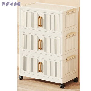 【前開き】【折り畳み式】【キャスター付き】折りたたみ 収納ケース。【出し入れ便利】上にふた付き、物を入れやすい。(蓋をロックできます。)物の出し入れは上だけではなく、側面も扉付き、ボックスを積み重ねる状態にも楽に側から