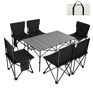 【折りたたみテーブルチェアセット仕様】素材:オックスフォード布+アルミ&ステンレス。5点セット内容:テーブル*1、椅子*4、収納袋*1。7点セット内容:テーブル*1、椅子*6、収納袋*1。屋外テーブルサイズ1: 95 x 55 x 5...