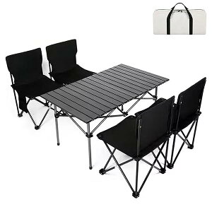 【送料無料】アウトドア テーブル チェア セット キャンプ テーブル57cm×95cm×50cm ピクニックテーブル 超軽量 折り畳み 組立簡単 収納バッグ付き BBQ お釣り ガーデン キャンプ用品(ブラック, 5点セッ...