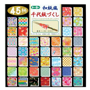 和紙風 サイズ:15×15cm 内容:45柄180枚入り 色柄違い45種の和風千代紙が合計180枚揃った千代紙セット。 保管に便利なPP製ケース付です。