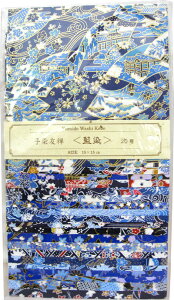 友禅柄藍染の折り紙です。 違う柄を20種セットにしました。 折り紙として使用するだけでなく、切り絵、人形制作や包装にもお使いいただけます。 こちらの商品は店頭同時販売になります。ご注文のタイミングや数量によっては店頭販売に
