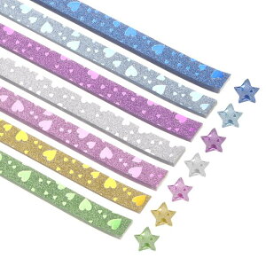 420枚の折り紙 グリッタースターペーパー ミックスカラー ハート柄 折り紙 初心者アートクラフトプロジェクト用紙 0.4 x 9.3"