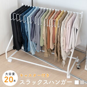 スラックスハンガー 大容量 20本掛け キャスター 簡単取り込み 時短 物干し 室内干し 省スペース ハンガー