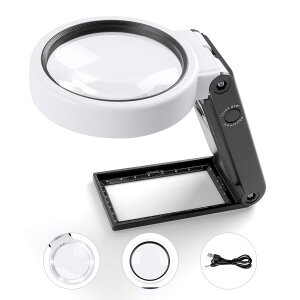 LEDライト付き、大口径ガラスレンズ採用の置き型ルーペ。LEDライトが付いているので暗い所でも明るく照らします。 倍率 3倍 レンズ材質 光学ガラス 本体材質 アルミニウム ライト LEDライト3灯 レンズ径...