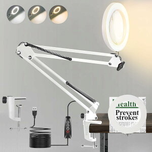 【5倍の倍率】このデスクライトは5倍率のルーペを搭載しています。照明する時、最大5倍率で鮮明な視野を提供します。閲読、裁縫、細かい作業をつくる、手つくりなどに最適します。拡大鏡、ズームイン眼鏡と比較して、ずっと快適です...