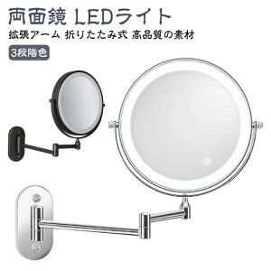 3段階色調整可 両面化粧鏡 壁付け 拡大鏡 両面鏡 360度回転 洗面