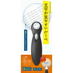 ■商品説明 「文字が見やすいルーペ 大型レンズタイプ 1コ」は、大型レンズなのに軽量で持ちやすく、握りやすい形状のルーペです。 ・光学レンズ倍率はメインレンズ約3倍、サブレンズ約6倍に拡大されます。 ・高輝度LED2灯搭載。暗い場所