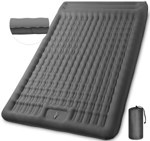 エアーマット キャンプ マット コンパクト 幅広135cm 厚さ12cm エアマット 2人用 枕付き 寝心地よい 厚手 持ち運び便利 収納袋付き アウトドア用 車中泊用 キャンプ用品。