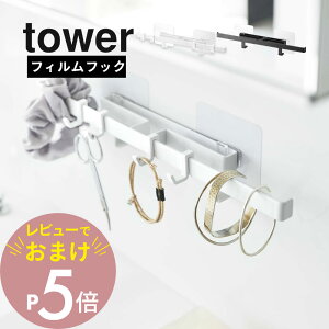 tower フィルムフックサニタリーハンガー タワー 収納は置くから浮くへ ・水回りのヌメリを防止したい ・洗顔するとき小物を直置きしている ・洗面に眼鏡を置くところが欲しい ・歯磨きコップを置く場所がない ・省スペースで収納した