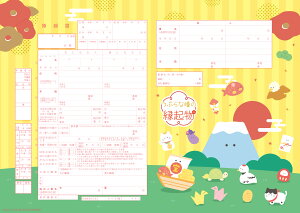 つぶらな瞳の縁起物が婚姻届に登場! 縁起のいい仲間達がお祝いするよ。 <セット内容> 1)役所提出用婚姻届(サイズA3)・・・2部 2)記念用婚姻届(サイズA4)・・・1部 3)飾れるクリアスタンド(A4用)・・・1セット 4)婚姻届...