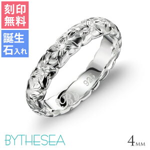 ハワイアンジュエリー シルバー925 リング プルメリア 指輪ブランドBY THE SEA(バイザシー)。「親愛」を意味するプルメリアが一周ぐるりと入ったバレルリング。