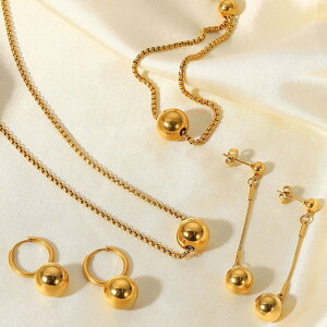 海外からの発送となりお届けに2週間程度を頂いております。予めご了承くださいませ。商品名ドロップ s ボール ペンダント リング 指輪 ピアス ネックレス ステンレス スチール ゴールド プレート ジュエリー アクセサリー セット レディー