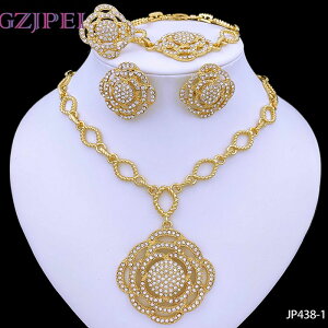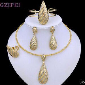 商品名4 個 ジュエリー セット 水 ドロップ ペンダント ネックレス ブレスレット リング 指輪 ピアス レディース ゴールド カラー ドバイ アフリ