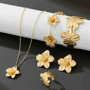 ・カテゴリ: セット・スタイル: ファッション通勤・素材: 合金・加工: 電鍍・セット内容: イヤリング、ネックレス、ブレスレット・チェーンスタイル: 通常チェーン・チャーム素材: 合金・柄: 植物花卉・カラー展開: ゴールド・対象:...