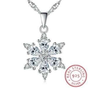 スターリング シルバー ジュエリー AAA ジルコン ジルコニア スノーフレーク ペンダント ネックレス レディース ギフト 45cm リンク チェー