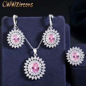 商品名ジルコニア ノーブル 太陽 花 フラワー 形 オーストリア ピンク クリスタル ジュエリー セット レディース CZ パーティ ペンダント ネックレス ピア