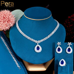 海外からの発送となりお届けに2週間程度を頂いております。予めご了承くださいませ。商品名贅沢 ブライダル 結婚式 ウェディング 4個 ジュエリー セット 青 ブルー CZ ストーン 大 水 ドロップ ペンダント ネックレス ピアス ブレ...