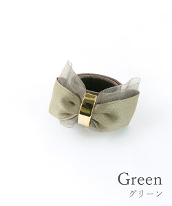 INFORMATION マットなサテン素材とオーガンジー素材を重ねたリボンのシュフィー。ポニーやお団子ヘアにくるっと巻きつけて使うアイテムです。フック付きなのでしっかり留まり、簡単におしゃれスタイルに仕上がります。中央のゴールドパー