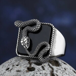 を頂戴します。予めご了承くださいませ。商品名新しい 良い メンズ パンク ロック 黒 ブラック ストーン リング 指輪 3D 蛇 スネイク ヘビ 動物 アニマル ゴシック スタイル 316L ステンレス...