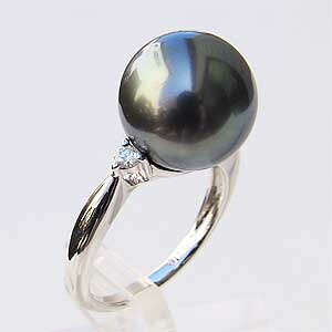 グリーン系の大粒12ミリのタヒチ黒蝶真珠のリングです。真珠の両サイドに1石ずつのシンプルなダイヤモンドが真珠の大きさを際立たせています。 真珠明細 ■タヒチ黒蝶真珠 ■大きさ:12mm ■色:グリーン系 ■形:ラウンド 真珠のグレード