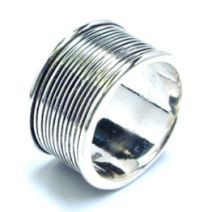 幅のあるシルバーリングに細やかに何本もの溝をデザインすることで、まるで細い針金を巻いたコイルのようなデザインの指輪です。 人気のコイルリングよりもコチラのほうが、両端のエッジが立っていますので、シャープな雰囲気を感じま