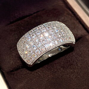 ダイヤモンドのような煌めき、ジルコニアのゴージャスリング!ダイヤモンドのような煌めきを放つジルコニアを敷き詰めたゴージャスリング! ずっしりとした重厚感と圧巻の輝きで大人の貫禄漂うメンズリング。 無骨な男の指に映えるボ