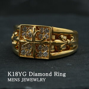 ★クロス×ダイヤの存在感ある印台スタイル ☆側面の透かし彫りが上品なアクセントにK18 最高級のゴールドを使用して、職人の手によって丁寧に作られた逸品です。重厚な印台フェイスに、