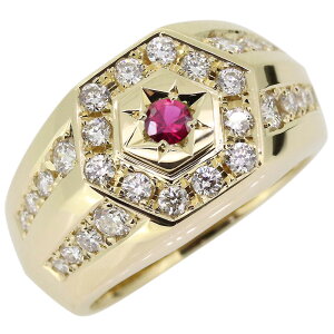 7月誕生石ルビーを一粒、ダイヤモンドを贅沢に使用した、18金製のメンズリングです。 本体素材:K18イエローゴールド/K18ホワイトゴールド(ロジウムコーティング)/K18イエローゴールド/K18ピンクゴールド (品質を保証するK18...