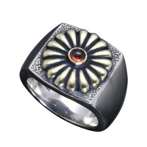 ギフト対応 [リングゲージレンタルはこちら←] 【SIZE】14〜28号 最大幅約18mm 最小幅約9mm 【素材】シルバー950 菊:真鍮 【石】ガーネット 定番の印台リングに人気の菊をセッティングした迫力あるアイテム...