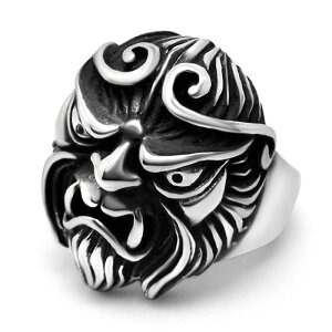 頭にキンコジを付けた猿(サル)、西遊記にも出てくる孫悟空をモチーフにしたオモシロいサージカルステンレス316L製のステンレスリングです。 立体感のあるリアルな表情がおもしろいステンリング。 ネックレスチェーンに通して首飾りと