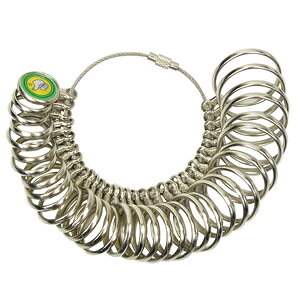 リングゲージ 指輪ゲージ指を通すことで簡単に測定することができるリングゲージ自分にピッタリな指輪のサイズを計測する際に使用するリングゲージです。33個のサイズの異なるリングが付いており、指輪のサイズの計測に用いることができる...