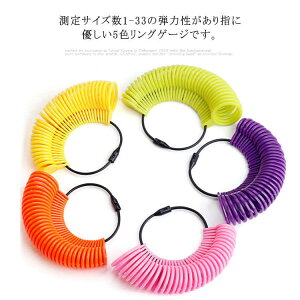 測定サイズ数1-33の弾力性があり指に優しい5色リングゲージです。指輪を購入したいけど、サイズがわからない、最近指のサイズを測っていないサイズゲージが欲しいそんな方におすすめ特にこの頃はWEBサイト上で購入する方も多いはず...