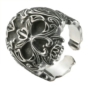 悪魔をイメージさせる殺気漂うスカル(どくろ)をデザインしたシルバーリング。 険しい表情と二本のキバが毒毒しさを演出したスカルリング(がい骨リング)は圧巻!!バンド部分にほどこされたデザインワークが高級感を演出したスカルリングは