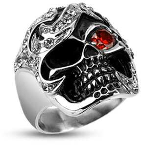 髪型がとってもかっこいいドクロリング。スカルの目と髪の毛にクービックジルコニアをセットしたド派手なステンレスリング。丈夫で半永久的な輝きを見せてくれる高級感のあるステンレスリングは、毎日の普段使いから、フォーマルなパ