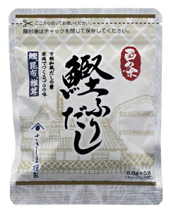 ティーパックタイプの和風万能の鰹だし(かつおだし)です。天然の素材にこだわった本品は焼津港からの鰹、宮崎産の椎茸、北海道産の利尻昆布、長崎産のサバ節を原料にしています。