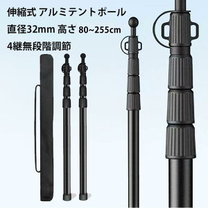 【高さ調整自由アルミテントポール】 高さは無段階で 高さ80cm?255cmに調節できます。従来品より軽量、よりコンパクト! ポールをひねって回転するだけで伸縮させ、長さが自由に変更可能です、お好みな方法で活用できます。 【4継無段階...