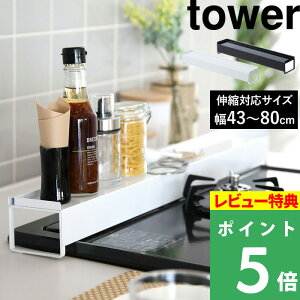 山崎実業 tower 棚付き伸縮排気口カバー タワー はこんな商品です。 スパイスや調味料などが置けるガード付の棚で排気口上を有効活用!グリル排気口に置くだけで、飛び散る油や調理汚れから排気口をしっかり守ってくれます。カバーはスラ