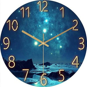 掛け時計 4mm超薄型 ガラスパネル おしゃれ インテリア 時計 壁掛け かけ時計 モダン 静音 連続秒針 星空 丸型 ウォールクロック デジタル 大数字 見やすい wall clock 12インチ living...