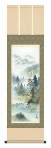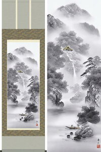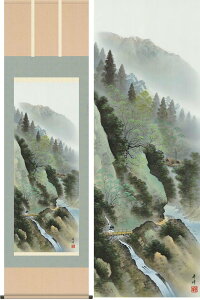 【画 題】山河水明 【解 説】枯淡の味わい深い幽玄の世界。何故か郷愁を誘う風景に心和みます。谷合いの爽快な涼風を感じる山里の夏を、流麗な筆致で描き上げた名作です。 【寸 法】190cm×54.5cm(尺五) 【作 家】小林秀峰 【体 裁】表