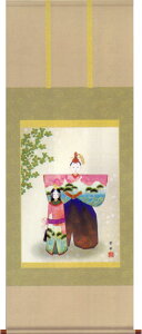■ 店長より一言コメント ■ 解 説 松園・玉堂から脈々と受け継ぐ雛の図を尺八幅で。精緻に描きこまれた衣柄と、清楚で優しい表情の顔の微妙な組み合わせが美しい価値ある逸品です。この作品は、特殊工芸技能を駆使して制作した作品で