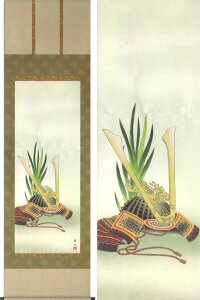 【画 題】兜 【解 説】細部にまで緻密に描かれた兜に、葉の形が刀に似ていることから尚武の象徴と言われる菖蒲の紋を添えた、典雅な趣が端午の節句飾りに最適な作品です。 【寸 法】135cm×64.5cm(尺八横) 【作 家】山村観峰 【体 裁】