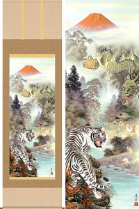 掛軸 龍虎図 尺五 洛彩三段表装 山村観峰 [大きさ]尺五 約幅54.5×190cm 山村 観峰 筆 鋭い眼光と逞しい足、南蛮渡来の虎と龍の姿に神の威厳を重ねて崇められてきた...