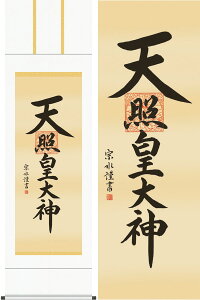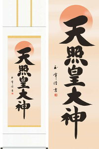 【画 題】天照皇大神 【解 説】豊作と幸福を司る太陽神であり、伊勢神宮の祭神最高位にある天照皇大神。偉大なる神徳をもって大いなる繁栄と平安をもたらす神々しい墨蹟作品です。 【寸 法】190cm×54.5cm(尺五) 【作 家】木村玉峰 【体