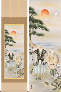 【画 題】高砂 【解 説】高砂の図の原点は故事にある。夫婦として力を合わせ新たな家庭を築く門出を、仲睦まじい夫婦の理想像を典雅高潔に描いた名品が格調高く彩ります。 【寸 法】190cm×54.5cm(尺五) 【作 家】西尾香悦 【体 裁】表