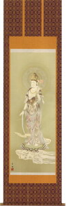 掛け軸 仏画 白衣観音 金襴佛表装 筋廻し仕様 尺五 浮田秋水 草夕会 [大きさ]尺五 幅54.5×高さ約190cm 浮田秋水(草夕会)筆 反り歪みがなく綺麗に掛けて頂ける理想的な品質で...