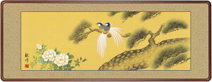 ■ 店長より一言コメント■ 解説永遠に枯れることのない長寿花が咲き、つがいの寿帯鳥が長寿松の枝に羽を安める理想郷の図を、ご一家の長寿円満の象徴としてお飾りください。この作品は、特殊工芸技能を駆使して制作した作品です。■