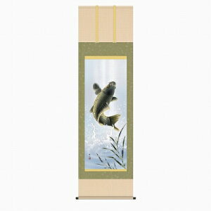 作品名 跳鯉(尺五立) 技法 版画+手彩色 外径サイズ 190×55 cm 作品サイズ − 補足説明 表装済 尺五立 状態 新品 付属品 高級桐箱 エディション 【作品解説・掛軸】鯉は威勢のよい魚で、どんなに高い滝でも登り